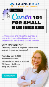 Location: LaunchBox, 121 S Marion St, Athens, AL 35611